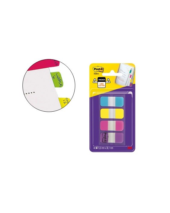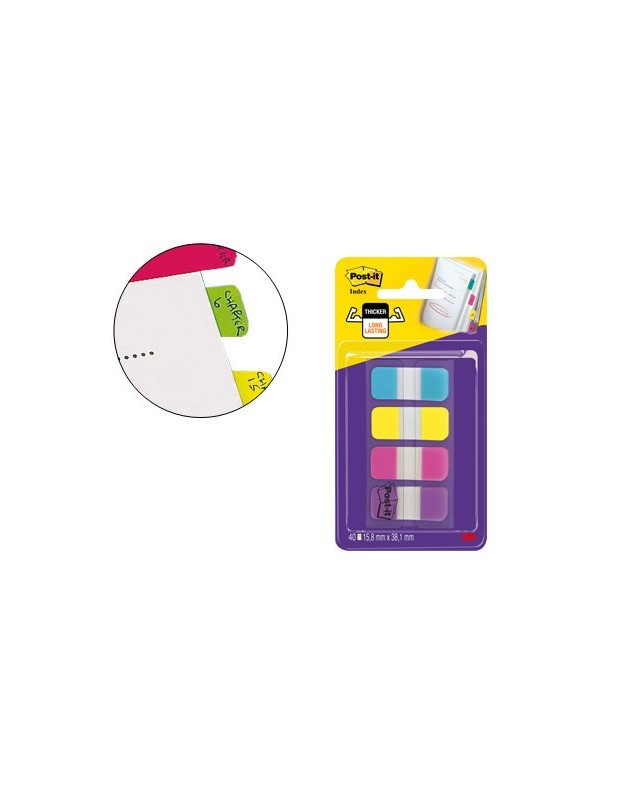 Banderitas separadoras rigidas dispensador 4 colores amarillo azul rosa y violeta post-it index 676-aypv-eu
