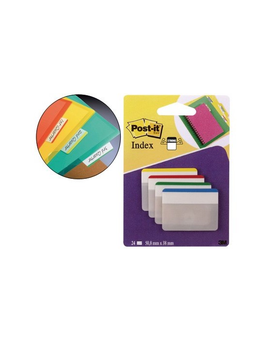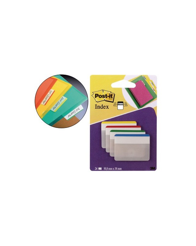 Banderitas separadoras rigidas dispensador 4 colores post-it index 686f-1 grandes 24 banderitas