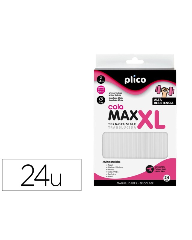Adhesivo termofusible translúcido de alta resistencia. Pega gran variedad de materiales como madera, cartón, telas, vidrio, cerámica. Muy adecuado para uniones que requieran de elevada resistencia y flexibilidad. Adhiere también sobre superficies difíciles como polipropileno o metales lacados. Actúa como sellador y rellena juntas y huecos. Compatible con pistolas MAX y MAX PRO.