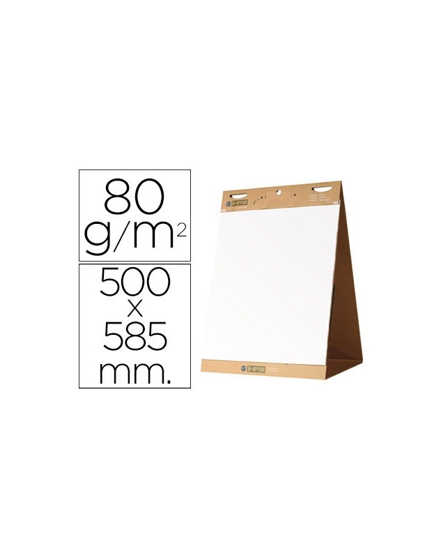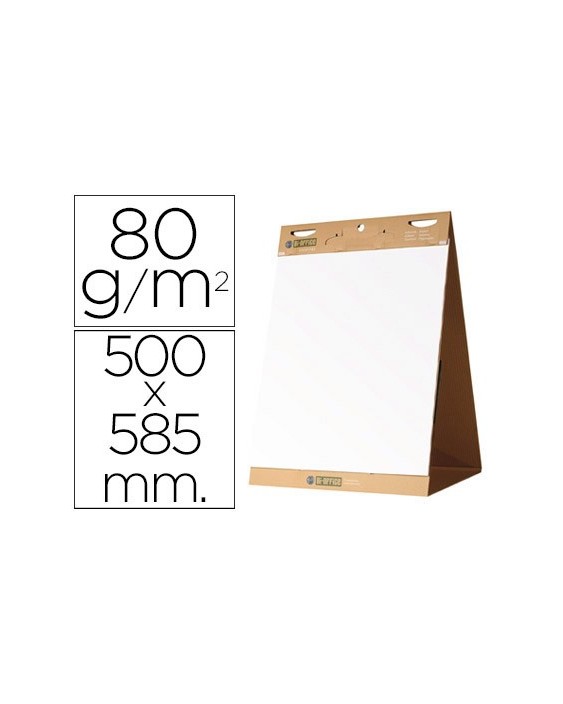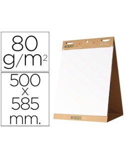 Bloc de sobremesa para pequeñas reuniones y presentaciones. Papel liso blanco reciclado de 80 g/m². Fácil de arrancar y pegar en otras superficies. Base resistente con tirador integrado y bandeja para rotuladores. Medidas: 50 x 58,5 cm. 20 hojas/bloc.