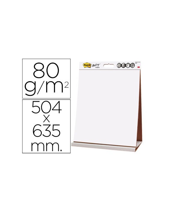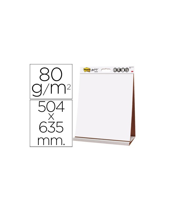 Bloc de reuniones fabricado en papel blanco liso de 80 g/m². Hojas reposicionables con adhesivo en la parte posterior que les permite adherirse a la mayoría de superficies. La tinta no traspasa el papel. Fácil de usar gracias a su estructura triangular, plegándose para un cómodo transporte y almacenamiento. Medidas: 50,4 x 63,5 cm. 20 hojas/bloc.
