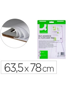 Para pizarra. Hojas autoadhesivas de quita y pon. Banda superior del papel con adhesivo, muy útil para aquellas pizarras que no estén adaptadas para incluirle el bloc de papel. Ideal para convenciones, reuniones, colegios, etc. Papel de 75 g/m². Medidas: 63,5 x 79,2 cm. 30 hojas/bloc.