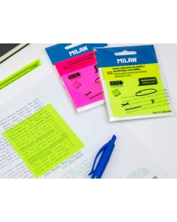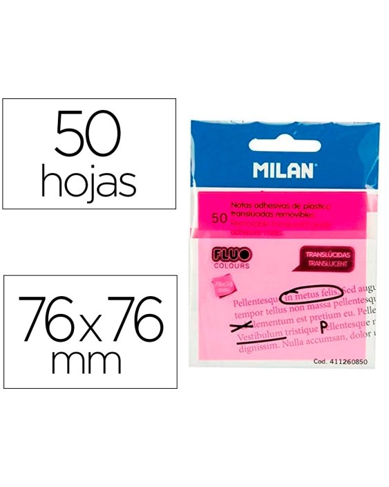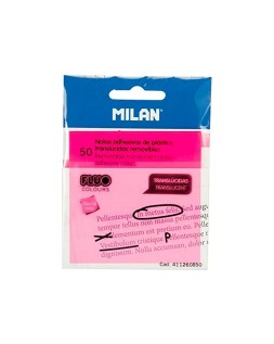 Bloc de notas adhesivas quita y pon milan 76x76 mm removible plastico translucido rosa fluor 50 hojas