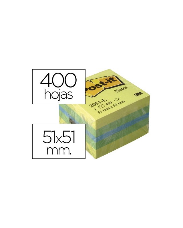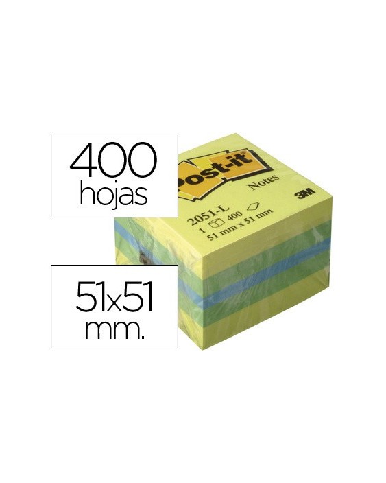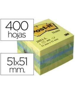 Bloc de notas adhesivas quita y pon post-it 51x51 mm minicubo color limon 2051-l 400 hojas