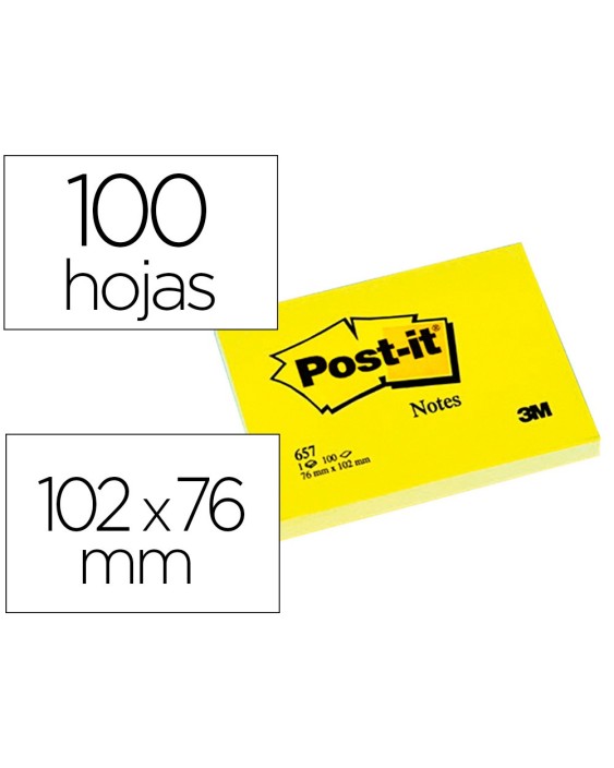 Bloc de notas adhesivas quita y pon post-it 76x102 mm con 100 hojas 657