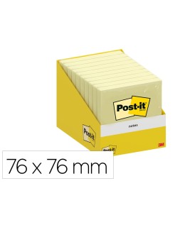 Bloc de notas adhesivas quita y pon post-it 76x76 mm con 100 hojas. Retractilados individualmente. Recomendables para escribir datos. Color amarillocanario. Las notas Post-it están elaboradas con fibras de papel con certi ficación PEFC procedentes de explotaciones sostenibles y orígenes controlados. El embalaje está hecho de cartón reciclado y puede usarse para guardar fácilmente las notas adhesivas y se puede reciclar cuando ya no se necesite.