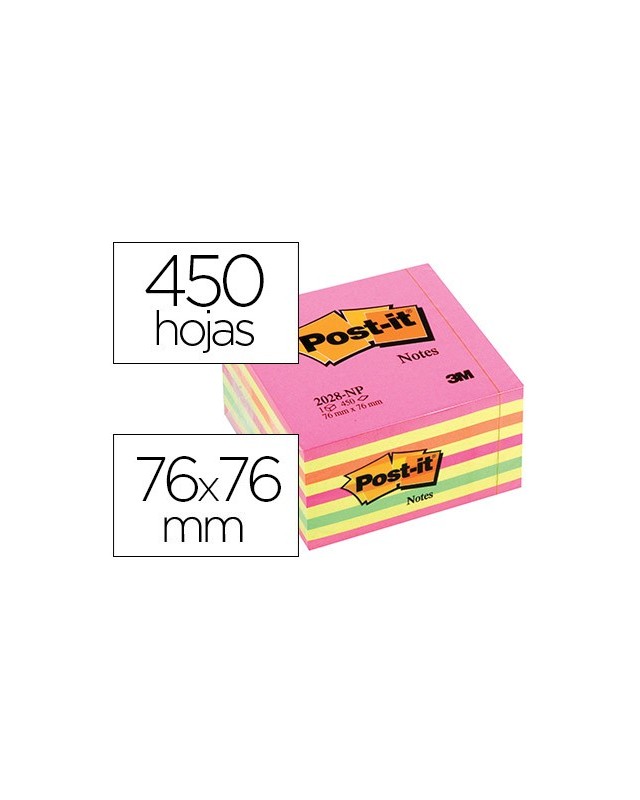 Bloc de notas adhesivas quita y pon post-it 76x76 mm cubo color rosa neon 450 hojas