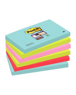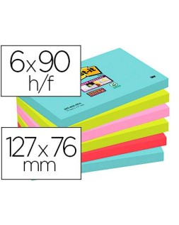 Bloc de notas adhesivas quita y pon post-it super sticky 76x127 mm con 90 hojas pack de 6 unidades colores miami