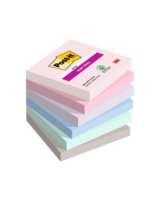 Las notas Post-it Super Sticky tienen el doble de poder de adherencia (quelas notas Post-it originales). Son superfuertes, superversátiles y están disponibles en colores suaves, brillantes o vibrantes para que la información destaque. Medidas: 76x127 mm.