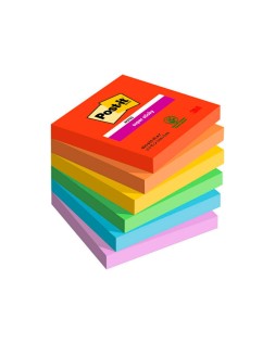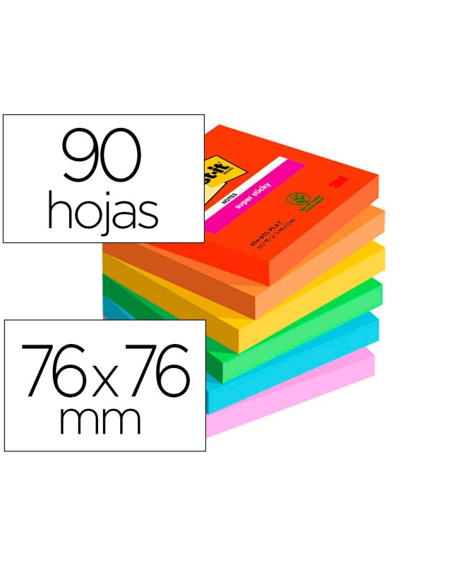 Bloc de notas adhesivas quita y pon post-it super sticky playful 76x76 mm 90 hojas 100% pefc pack de 6 unidades