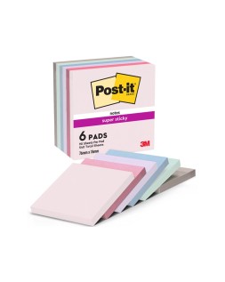 Las notas Post-it Super Sticky tienen el doble de poder de adherencia (quelas notas Post-it originales). Son superfuertes, superversátiles y están disponibles en colores suaves, brillantes o vibrantes para que la información destaque. Medidas: 76x76 mm.