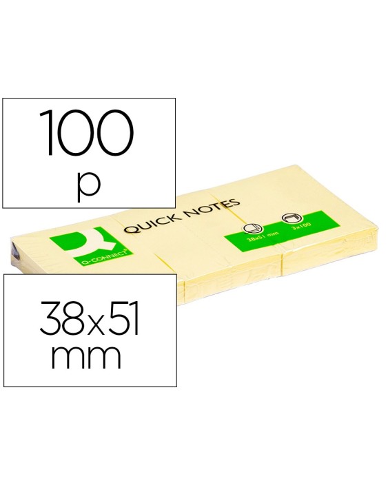 Bloc de notas adhesivas quita y pon q-connect 38x51 mm con 100 hojas