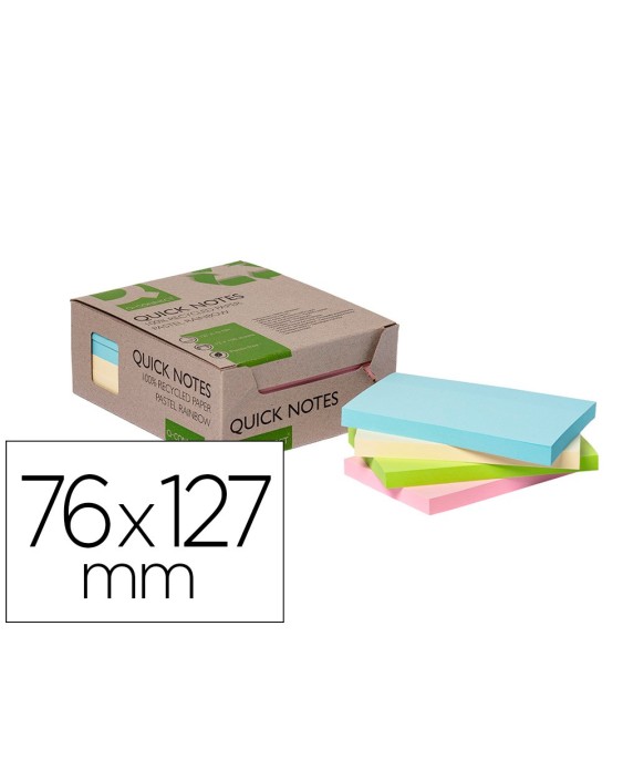 Bloc de notas adhesivas quita y pon q-connect 76x127 mm 100% papel reciclado colores pasteles en caja de carton