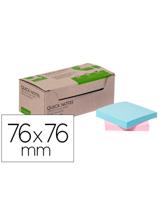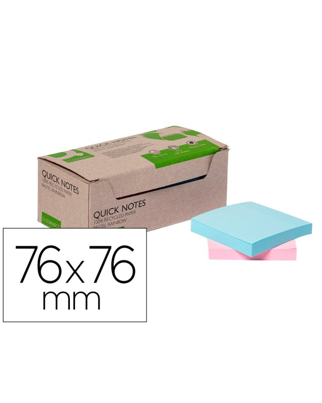 Bloc de notas adhesivas quita y pon q-connect 76x76 mm 100% papel reciclado colores pasteles en caja de carton