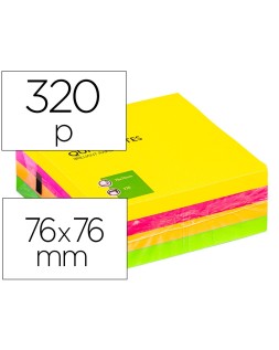 Bloc de notas adhesivas quita y pon q-connect 76x76 mm fluorescente con 320 hojas