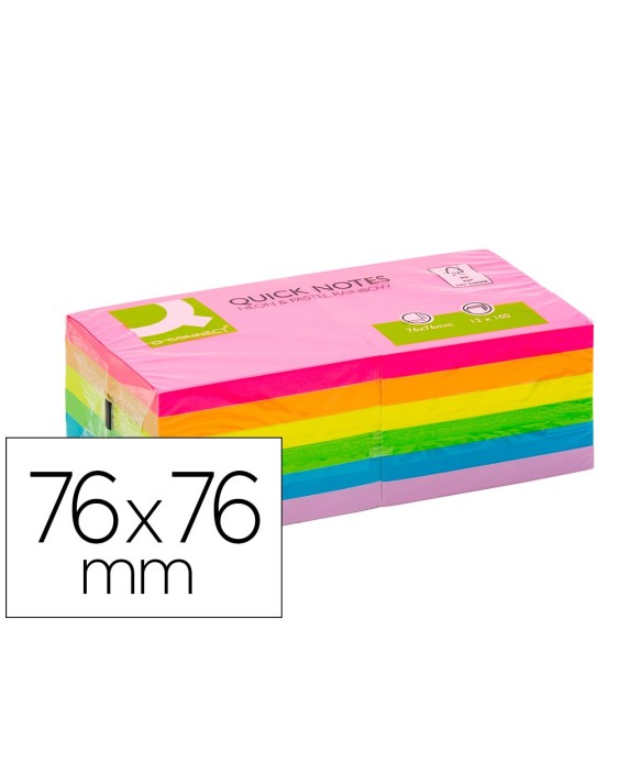Bloc de notas adhesivas quita y pon q-connect 76x76 mm fsc colores neon y pastel surtidos