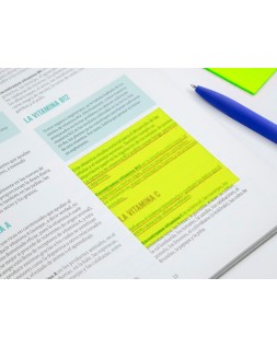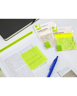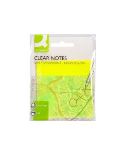 Bloc de notas adhesivas quita y pon q-connect 76x76 mm removible plastico translucido amarillo neon con 50 hojas
