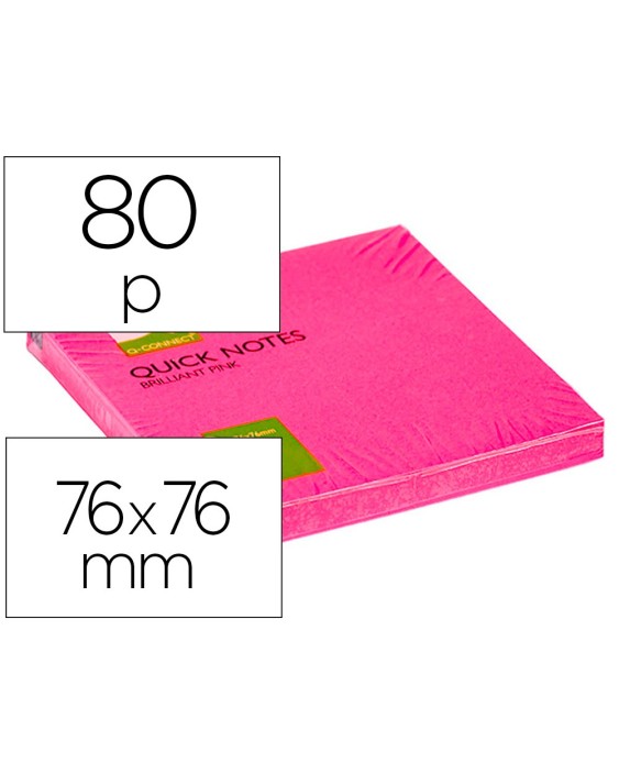 Bloc de notas adhesivas quita y pon q-connect 76x76 mm rosa neon 80 hojas