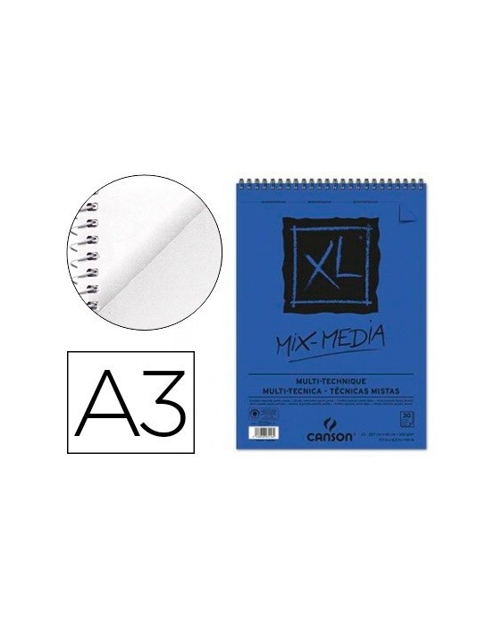 Bloc dibujo acuarela canson xl mix media grano medio din a3 microperforado espiral 29,7x42cm 30 hojas 300 gr/m2