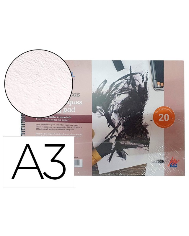 Bloc dibujo acuarela michel espiral din a3 con papel cristal intercalado 20 hojas 200 gr/m2 297x420 mm