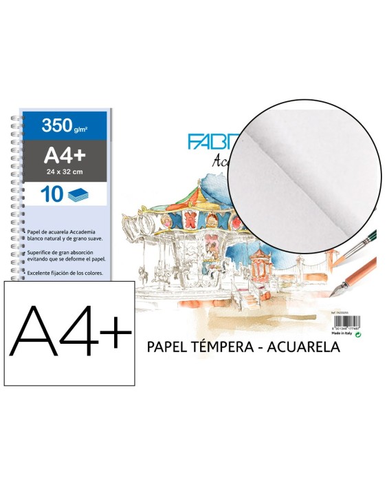 Bloc dibujo acuarela sadipal fabriano espiral din a4+ 10 hojas 350 g/m2 grano suave