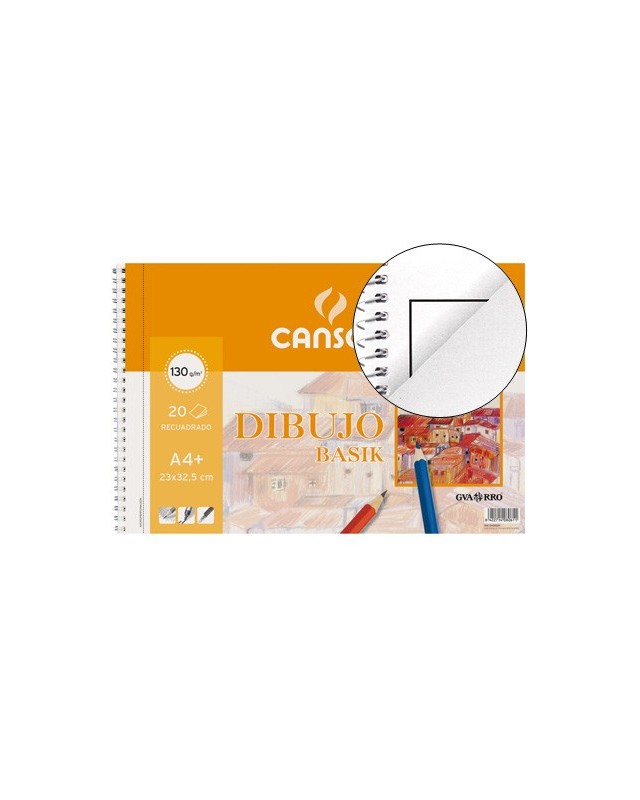 Bloc dibujo basik din a4+ espiral 23 x 32.5 cm 20 hojas microperforado 2 taladros -con recuadro