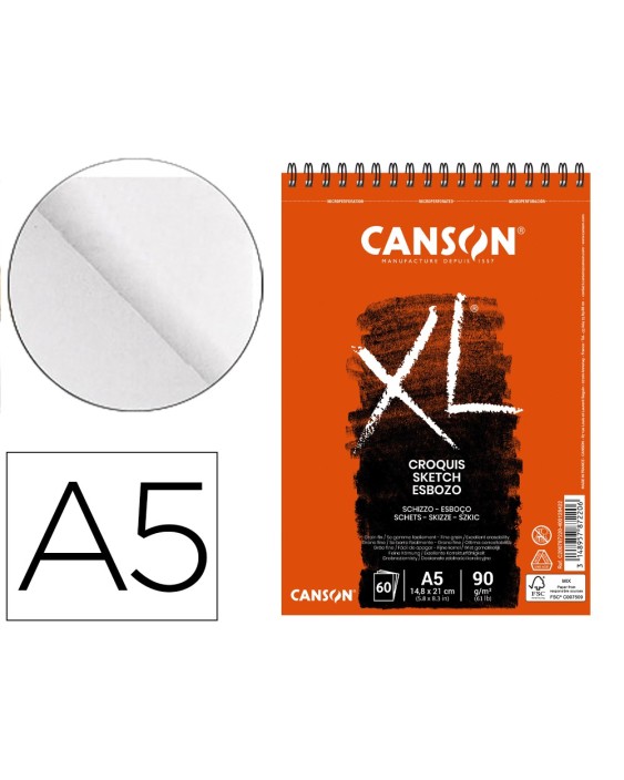 Bloc dibujo croquis din a5 microperforado 14,8x21 cm 60 hojas grano fino 90 gr/m2