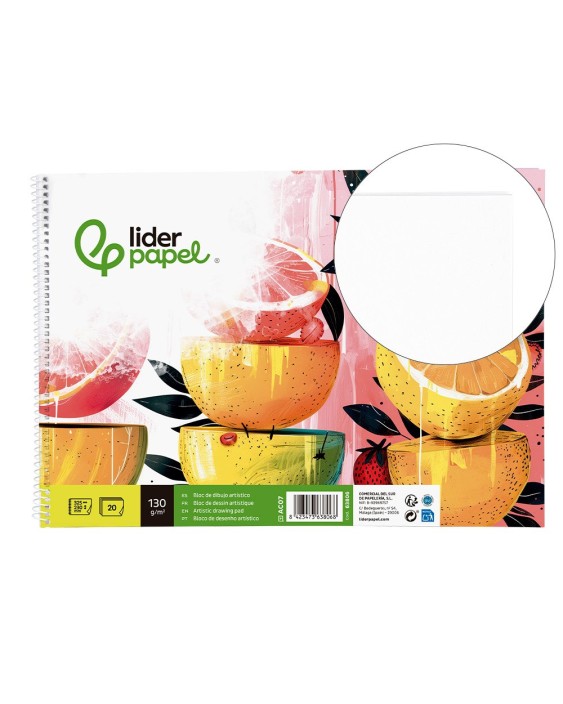 Bloc dibujo liderpapel artistico espiral 230x325mm 20 hojas 130g/m2 sin recuadro sin microperforado