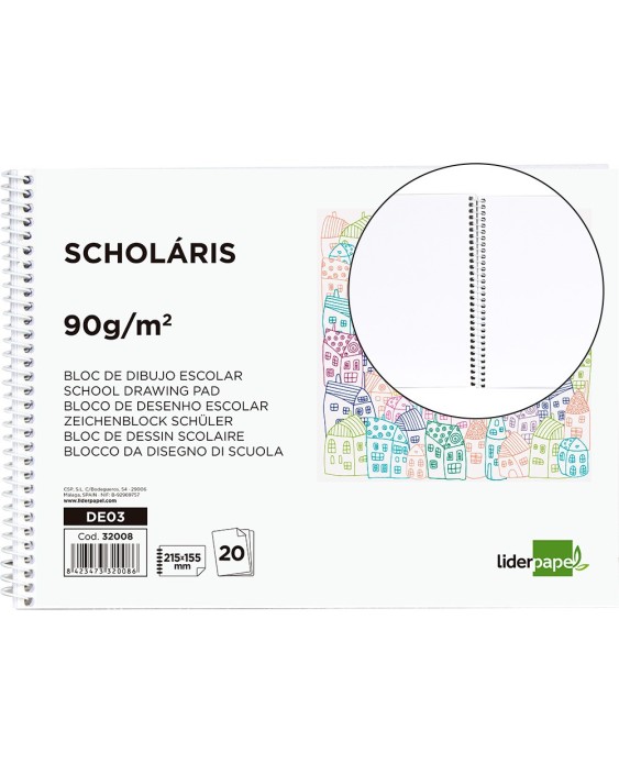 Bloc dibujo liderpapel escolar espiral 155x215mm 20 hojas 90 gr/m2 sin recuadro