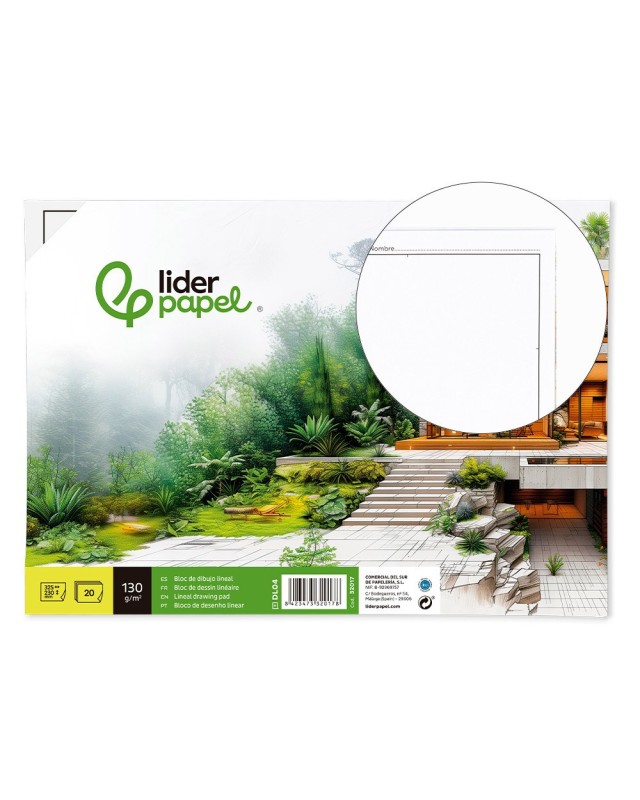 Bloc dibujo liderpapel lineal encolado 230x325mm 20 hojas 130 gr/m2 con recuadro