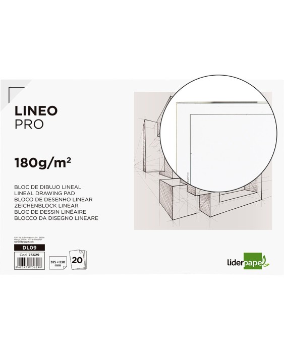 Bloc dibujo liderpapel lineal encolado 230x325mm 20 hojas 180 gr/m2 con recuadro