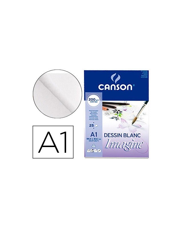 Bloc dibujo multitecnicas canson imagine din a1 encolado liso 59,4x84,1 cm 25 hojas 200 gr/m2