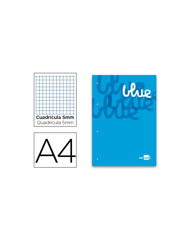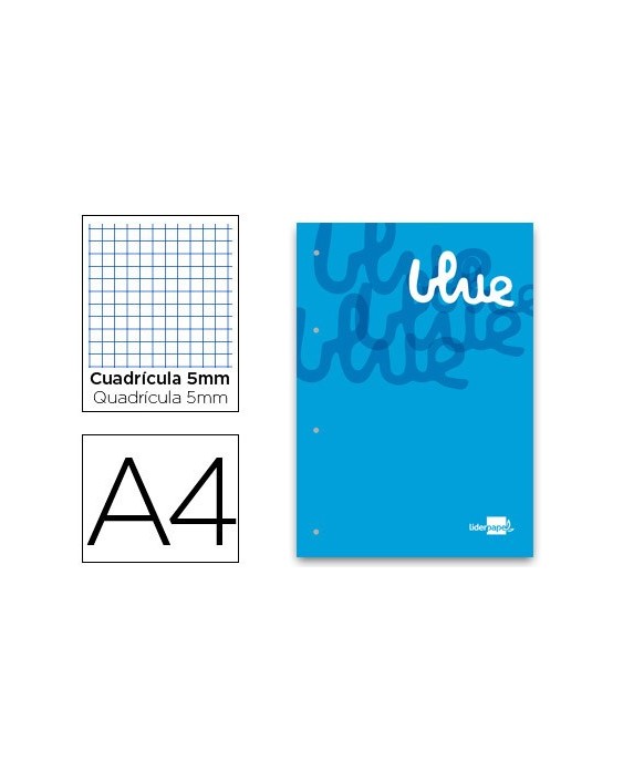 Bloc encolado liderpapel cuadro 5 mm azul a4 natural 100 hojas 100 g/m2