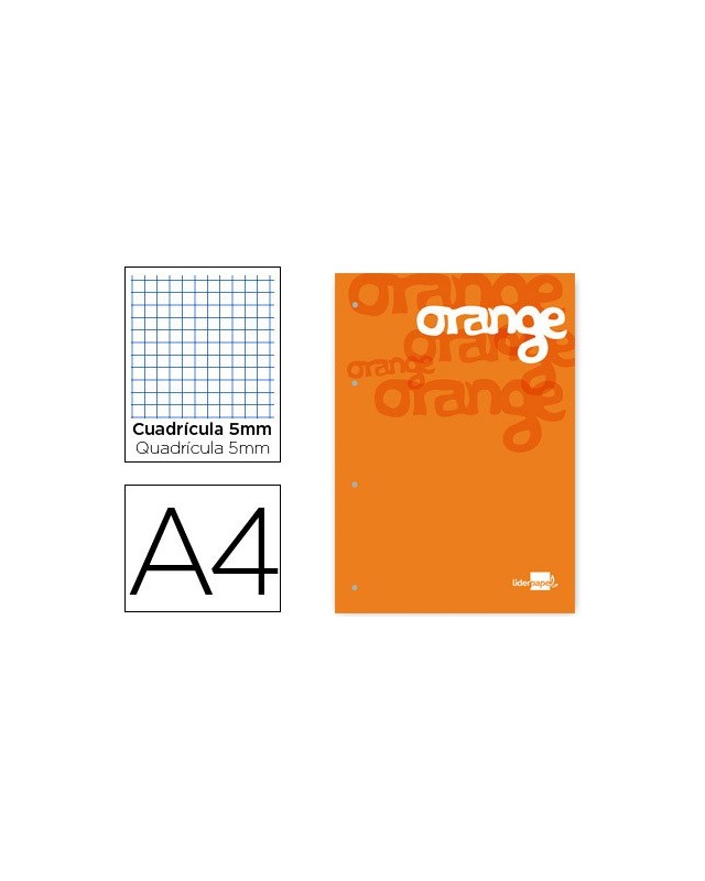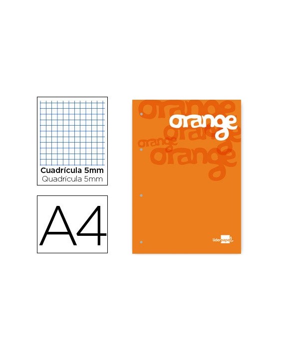 Bloc encolado liderpapel cuadro 5 mm naranja a4 natural100 hojas 100 g/m2