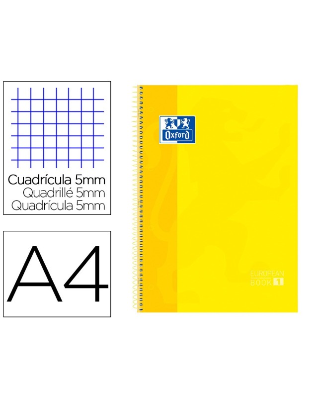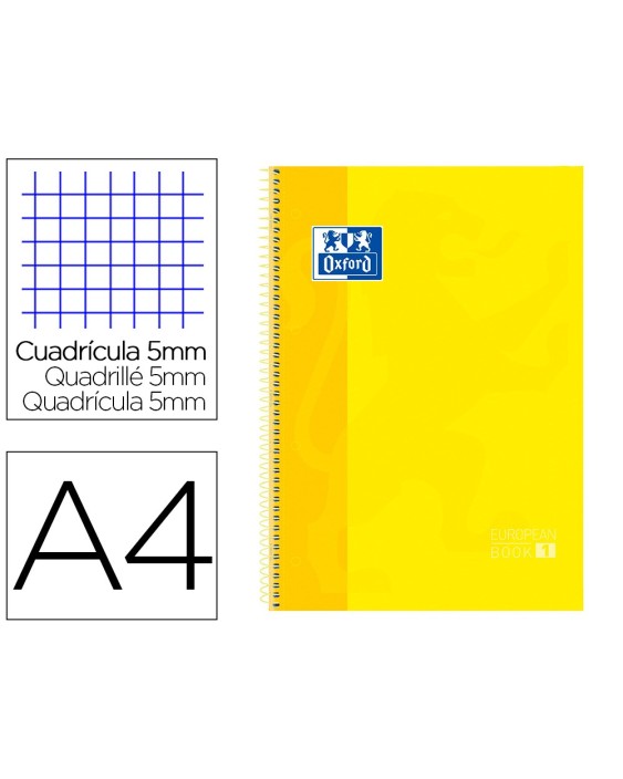 Bloc espiral oxford tapa extradura microperforado din a4 80 hojas cuadros 5mm color amarillo