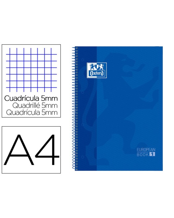 Bloc espiral oxford tapa extradura microperforado din a4 80 hojas cuadros 5mm color azul