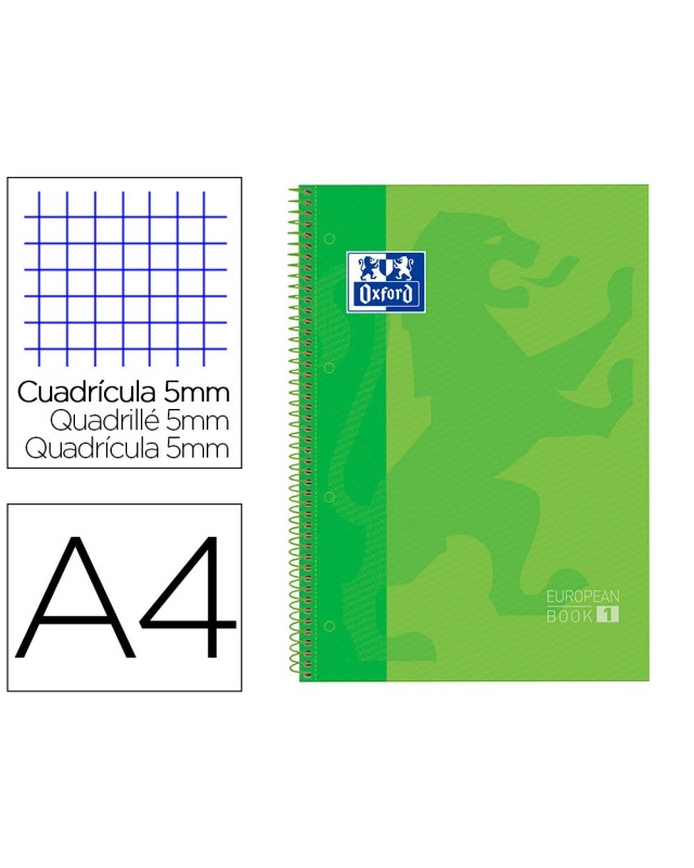 Bloc espiral oxford tapa extradura microperforado din a4 80 hojas cuadros 5mm color verde