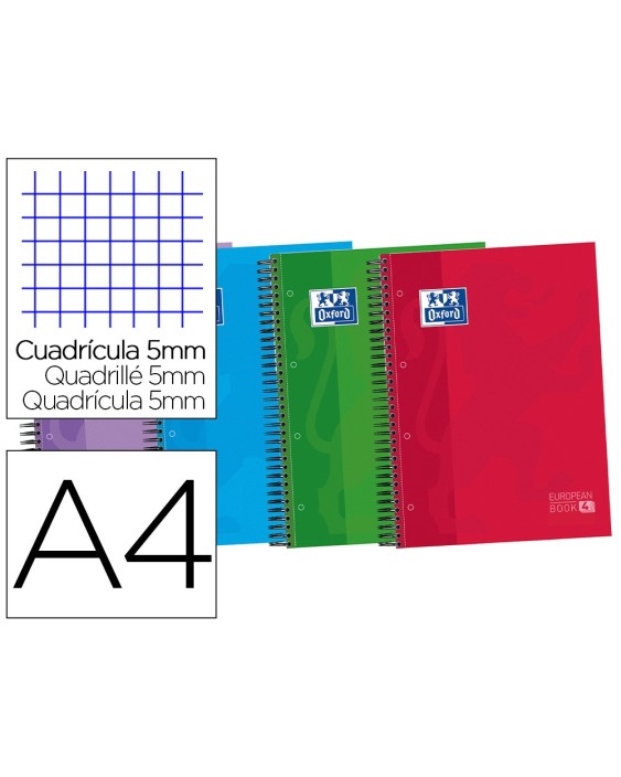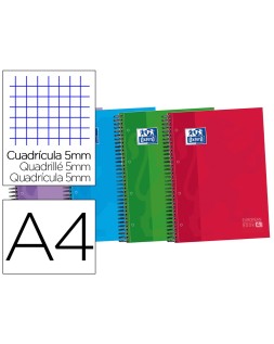 Cuaderno con doble espiral. Tapa extradura. 120 hojas. Papel de 90 g/m² OPTIK PAPER. Permite escribir por las dos caras. La tinta no traspasa. Microperforado. Cuadrícula de 5 mm. 4 taladros. 4 recuadros de color divididos por 3 separadores extraíbles. Formato Din A4+. Colores surtidos.