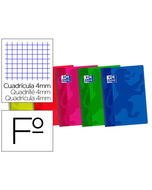 Bloc espiral oxford tapa plastico optik paper folio 80 hojas 90 gr cuadros 4 mm