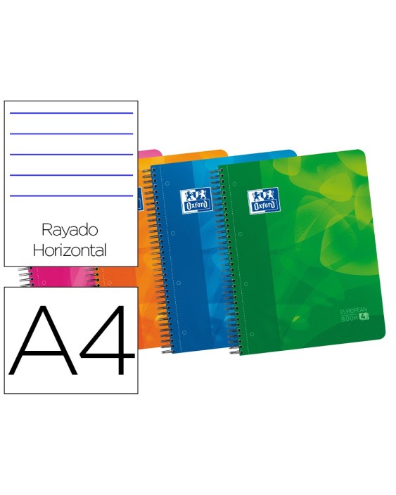 Cuaderno con doble espiral. Tapa fabricada en polipropileno. 120 hojas. Papel de 90 g/m² OPTIK PAPER. Permite escribir por las dos caras. La tinta no traspasa. Microperforado. Rayado horizontal. 4 taladros. 4 recuadros de color divididos por 3 separadores extraíbles. Con bolsa portahojas. Formato Din A4+. Colores surtidos.