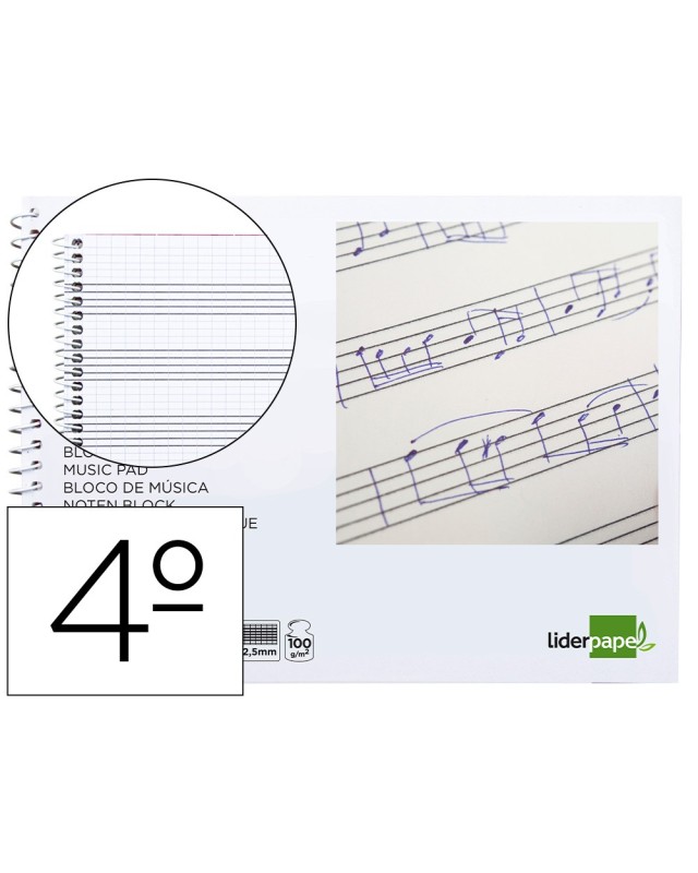 Bloc musica liderpapel combi pentagrama cuadriculado 2,5mm cuarto 20 hojas 100g/m2