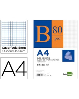 Bloc notas liderpapel cuadro 5mm a4 80 hojas 60g/m2 encolado 4 taladros doble margen