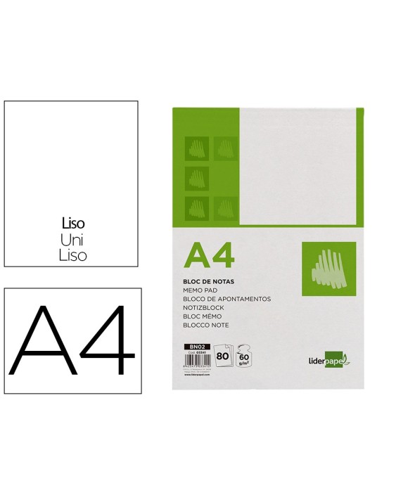 Bloc notas liderpapel liso a4 80 hojas 60g/m2