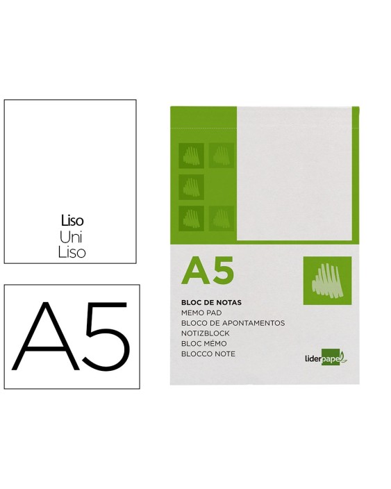 Bloc notas liderpapel liso a5 80 hojas 60g/m2 perforado