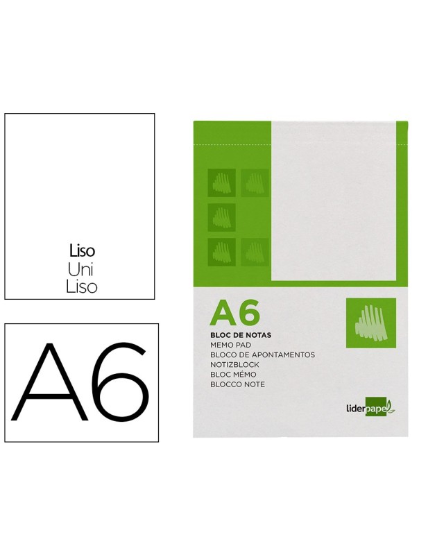 Bloc notas liderpapel liso a6 80 hojas 60g/m2 perforado