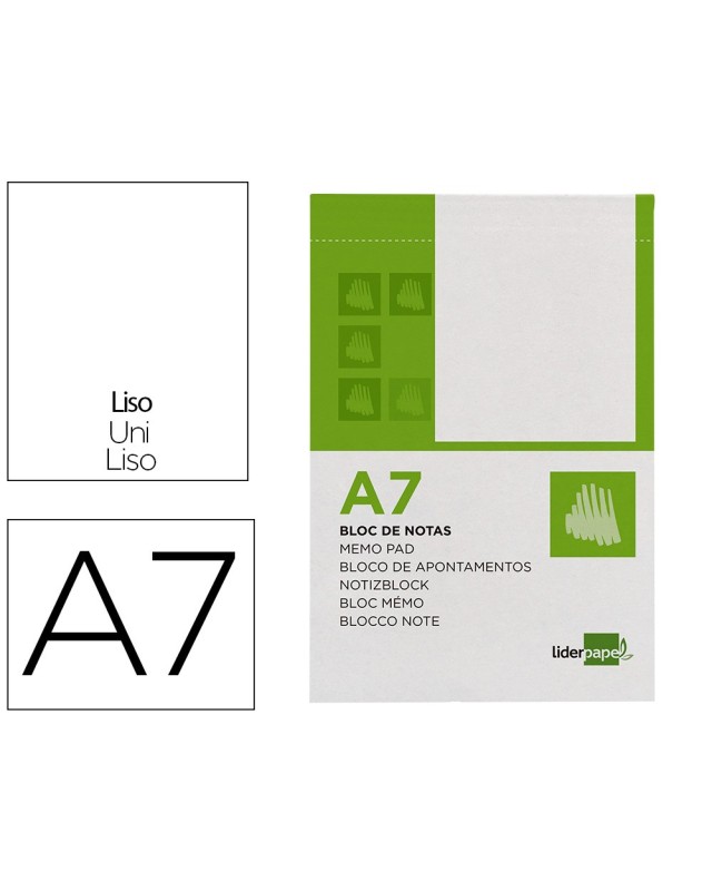 Bloc notas liderpapel liso a7 80 hojas 60g/m2 perforado