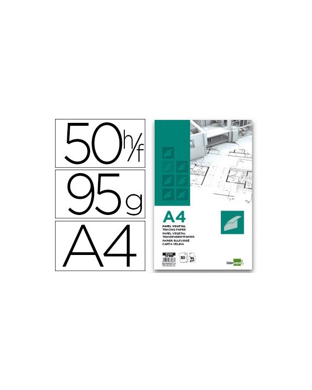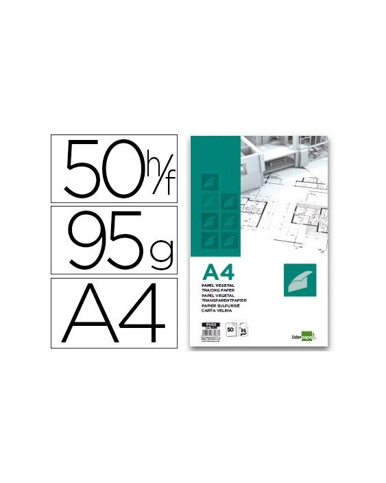 Bloc papel vegetal liderpapel encolado 210x297mm 50 hojas 95g/m2