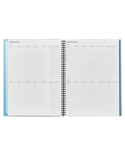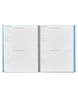 Bloc para la planificación, la organización de las actividades y la evaluación del alumnado. Tríplex, 3 funciones: ideal evaluación continua, agenda/plan semanal y tutoría. Contenido: datos personales y horario, plan mensual del curso, evaluación continua, agenda-plan semanal, tutoría con datos personales y familiares de los alumnos, entrevistas, reuniones, anotaciones, webs de interés, direcciones y teléfonos. Incluye: Wire-o y fundas de polipropileno transparente, calendario y etiquetas autoadhesivas para la lista de alumnos. Con encuadernación de espiral doble. Colores surtidos. Medidas: 22,5 x 31 cm.