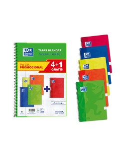 Cuaderno espiral oxford tapa blanda folio 80 hojas 90gr cuadro 4 mm colores tendencias pack de 4+1