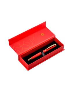 El bolígrafo Passion D'or es una pieza única que combina el color rojo pasión con una textura de aluminio cepillado y detalles metálicos en dorado. Viene presentado en una elegante caja de diseño con cierre magnético, también decorada en su interior. Podrás escribir con estilo y elegancia, ya que las piezas Passion D'Or brindan una experiencia de escritura excepcional, añadiendo un toque de glamour a cada palabra. El rojo pasión combinado con dorado realza su estética elegante y exclusiva. Cada pieza evoca una sensación de seducción y sensualidad, creando un vínculo emocional muy especial con la persona que la utiliza. Tinta color azul. Grosor tamaño 0,8 mm.